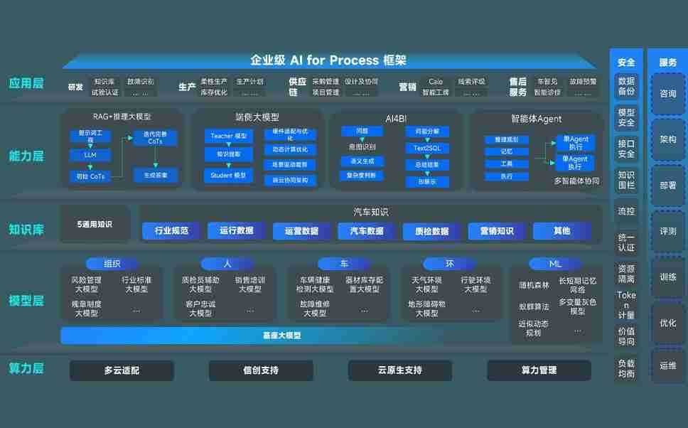 端到端的一站式AI工作空间深度融合了从企业战略规划到日常经营的全流程业务板块,,,定向解决车企内部领域多、、、、部门多、、链条长、、、、场景碎片化等难题,,,支持车企快速构建以AI为核心的生产力写作体系,,实现任务执行与AI能力的无缝集成与交互